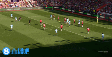 还是第45+1分钟,曼城左侧角球机会,阿坎吉头球攻门顶偏了。↓